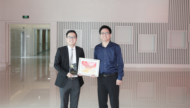 Sean Xu, CEO of Longrich (in black suit) receiving the GSK award