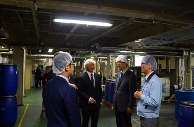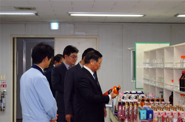 徐董一行在全長(zhǎng)烈會(huì)長(zhǎng)的陪同下考察了evercos公司的實(shí)驗(yàn)與生產(chǎn)工廠。全長(zhǎng)烈會(huì)長(zhǎng)重點(diǎn)介紹了公司高端的化妝品以及日用品生產(chǎn)技術(shù)。