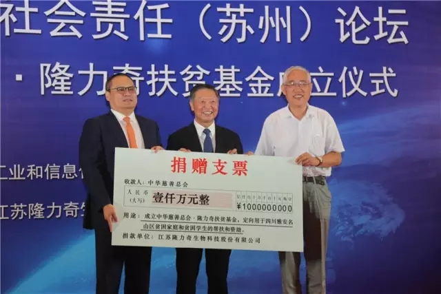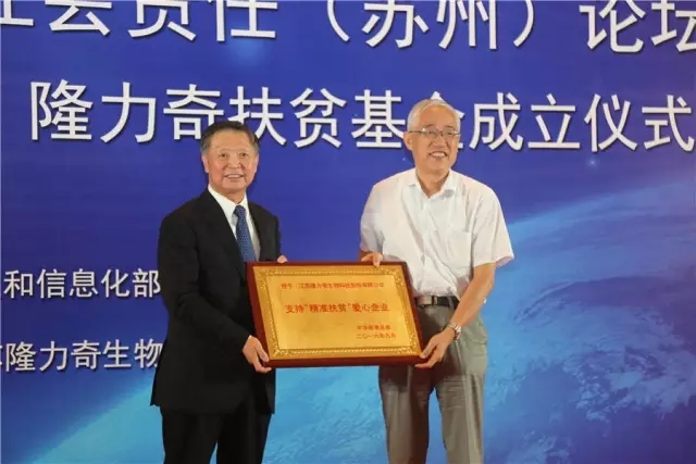 2016年9月24日,由工業(yè)和信息化部工業(yè)文化發(fā)展中心主辦,江蘇隆力奇生物科技股份有限公司承辦,中華慈善總會(huì)支持的“中國(guó)企業(yè)社會(huì)責(zé)任(蘇州)論壇暨中華慈善總會(huì)·隆力奇扶貧基金成立儀式”在蘇州隆重舉行。