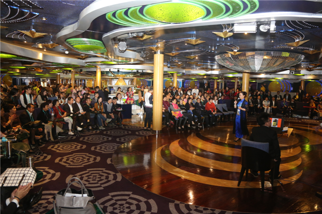 10日上午,歌詩達(dá)·賽琳娜號繼續(xù)暢游在太平洋上,而船艙內(nèi)的隆力奇家人們早已經(jīng)活躍在郵輪的各個角落:宙斯大劇院的千人旅游說明會議,萬神殿大堂精彩的意大利教學(xué)課程,日光泳池的晨間拉伸課程,阿波羅大酒吧的舞蹈教學(xué)課程,免稅購物區(qū)等,賽琳娜號以富麗輝宏的內(nèi)飾設(shè)計和精致完美的細(xì)節(jié)隨處吸引了喜歡自拍的隆力奇家人們。