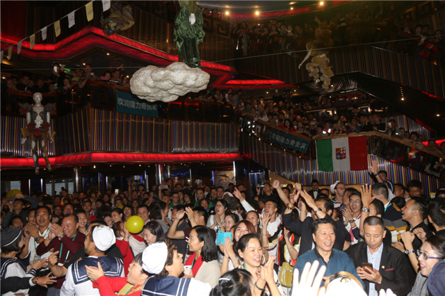 夜幕降臨時,賽琳娜號上豐富多彩的節(jié)目又將我們帶回這座古羅馬“城堡”。炫目的魔術(shù)表演,美妙的歌聲和絢麗的華服組成的歌舞秀,魔幻燈光變化的動感視覺,全程爆笑的滑稽戲,感人而歡樂的歌詩達(dá)員工秀,各式各樣的表演豐富著我們的夜生活。
