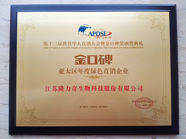 隆力奇榮獲“金口碑亞太區(qū)年度綠色直銷企業(yè)”獎(jiǎng)