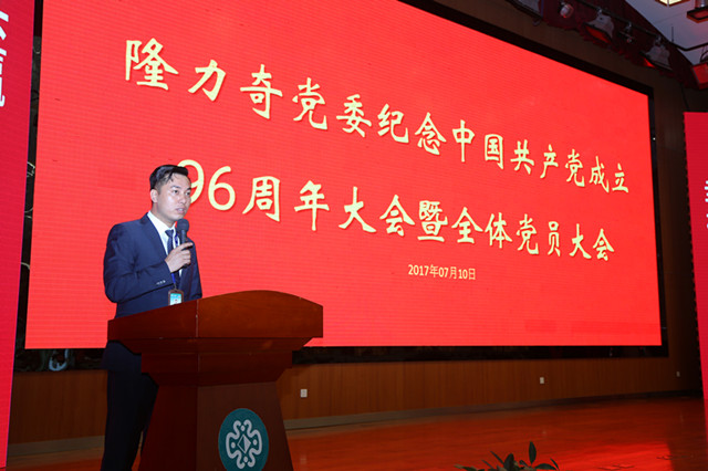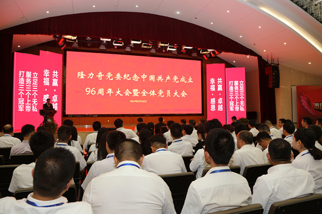 7月10日上午,隆力奇黨委紀(jì)念中國共產(chǎn)黨成立96周年大會(huì)暨全體黨員大會(huì)在隆力奇全球直銷總部召開。公司黨委各級干部、全體黨員一百余人參加了此次會(huì)議,隨后召開了隆力奇黨委“兩學(xué)一做”學(xué)習(xí)教育常態(tài)化制度化座談會(huì),隆力奇黨委書記、董事長徐之偉作重要講話并進(jìn)行“兩學(xué)一做”專題培訓(xùn),激勵(lì)公司各級黨組織和廣大黨員干部,不忘初心、繼續(xù)前進(jìn),提振精神、鼓舞干勁,進(jìn)一步推動(dòng)公司跨越式發(fā)展,以優(yōu)異成績慶祝建黨96周年、迎接黨的十九大勝利召開。大會(huì)由隆力奇黨委副書記、直銷事業(yè)部全球總裁趙建華主持。