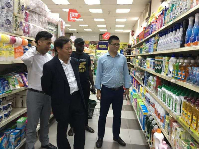 徐董考察拉各斯地區(qū)大型超市隆力奇產(chǎn)品排面陳列情況