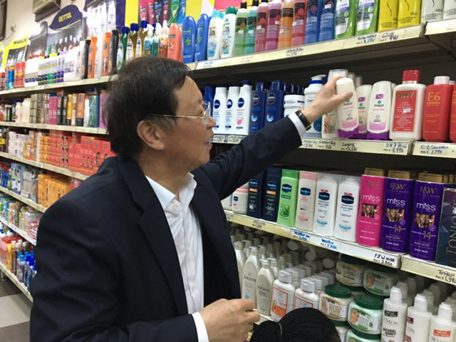 徐董考察了拉各斯地區(qū)幾間大型超市,包含著名國際連鎖超市shopprite, 和幾家本地超市。仔細(xì)了解隆力奇產(chǎn)品在商超的進(jìn)場、商品陳列、促銷等終端動銷的細(xì)節(jié)。