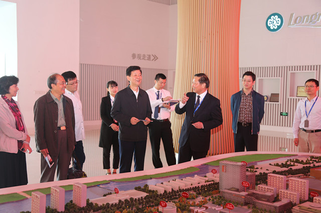 徐董向考察團(tuán)介紹隆力奇養(yǎng)生小鎮(zhèn)沙盤模型