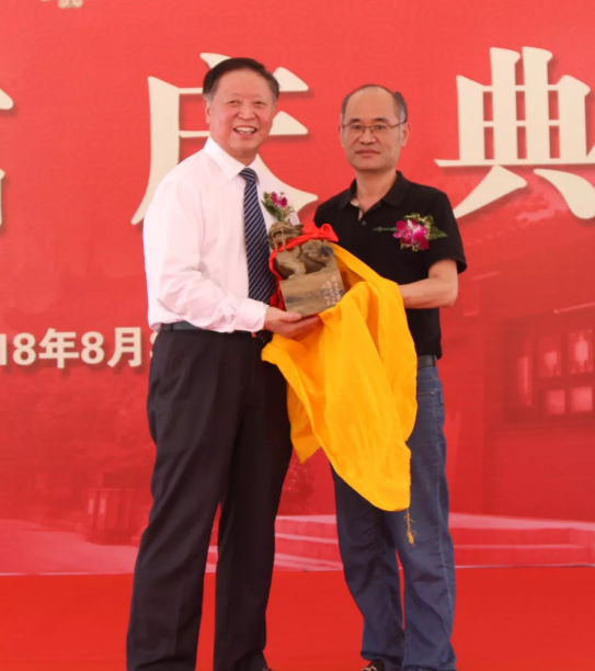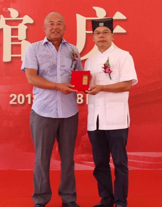 ▲常熟市宗教局局長蘇建東向徐之偉贈送“隆力奇寶印”