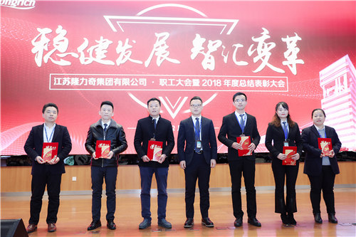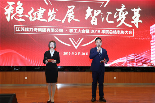 2月20日,江蘇隆力奇集團有限公司 · 職工大會暨2018年度總結表彰大會隆重召開。會上表彰了20名優(yōu)秀優(yōu)秀員工、4個先進集體、17名在外獲得榮譽的員工、35名入職滿15年兢業(yè)員工,以及17名入職滿二十年的榮耀員工。隆力奇集團全體職工參加大會,徐董發(fā)表重要講話。