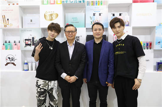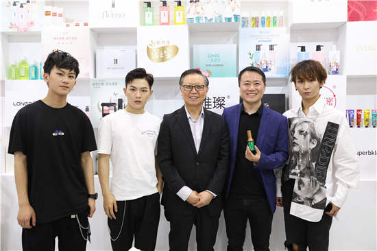 △SWIN組合成員茍晨浩宇、朱云龍與隆力奇董事長(zhǎng)徐之偉