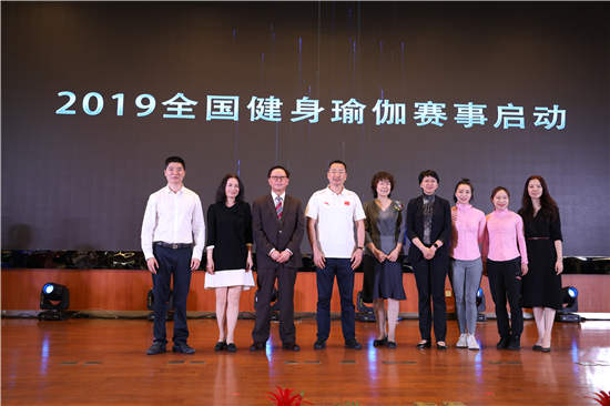 △2019年全國健身瑜伽賽啟動儀式領(lǐng)導(dǎo)合影