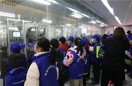 2月11日,來自吳中區(qū)蘇苑實驗小學(xué)和木瀆實驗小學(xué)近200名蘇報新蕾小記者走進(jìn)隆力奇開展科普研學(xué)活動,以“聽介紹、提問題、看生產(chǎn)、做游戲”的方式,寓教于樂,近距離感受智能工廠硬核實力。