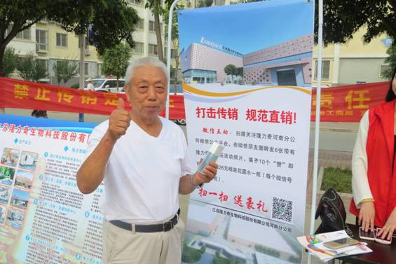 活動(dòng)正式開始前,各直銷公司在社區(qū)廣場以展板形式,向廣大市民宣傳直銷與傳銷區(qū)別,以及如何辨別傳銷。隆力奇河南分公司活動(dòng)現(xiàn)場氣氛更是熱鬧非凡,爭相來到臺前了解公司文化、公司產(chǎn)品,對公司的花露水等產(chǎn)品贊不絕口,隆力奇公司可謂是家喻戶曉。為了讓更多的市民體驗(yàn)公司的產(chǎn)品,現(xiàn)場特意安排互動(dòng)環(huán)節(jié),掃描關(guān)注隆力奇河南分公司微信公眾平臺,拍取6張現(xiàn)場照片發(fā)送至朋友圈,集齊10個(gè)贊即可獲得花露水一瓶。廣大市民蜂擁而至,爭先恐后的參與活動(dòng),紛紛為隆力奇高品質(zhì)的產(chǎn)品點(diǎn)贊!