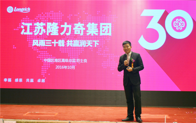 隆力奇南區(qū)高級(jí)總監(jiān)符士良先生隨后登臺(tái)分享。符總的分享詳盡的介紹了隆力奇從過(guò)去到未來(lái),從經(jīng)典到卓越的30年發(fā)展歷程。從智能化工廠到科技型小鎮(zhèn),從八大研發(fā)中心到六大品類產(chǎn)品,從百億品牌價(jià)值到無(wú)私反哺社會(huì),隆力奇三十年鐵肩擔(dān)道義,淬火鑄輝煌。