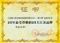 最受尊敬的25大江蘇品牌榮譽(yù)證書