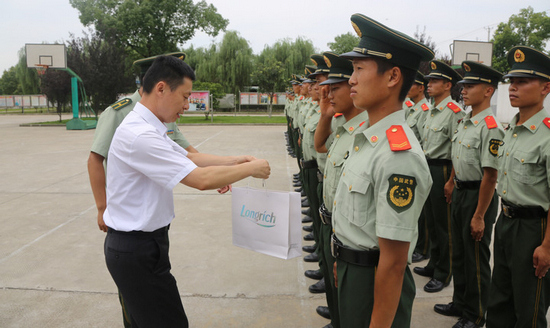 7月19日,隆力奇愛(ài)心基金工作人員走進(jìn)蘇州武警官兵團(tuán)開(kāi)展慰問(wèn)活動(dòng)。向武警官兵捐贈(zèng)夏季生活用品。
