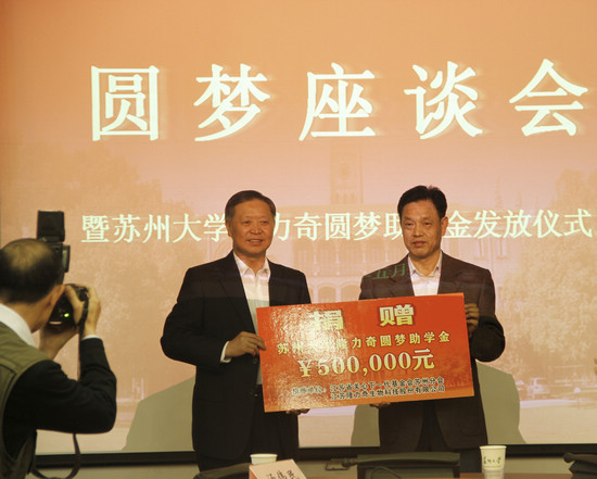 在此次座談會(huì)上,還舉行了隆力奇圓夢(mèng)助學(xué)金的發(fā)放儀式。據(jù)悉,隆力奇承諾自2012年至2015年,連續(xù)5年,每年定向捐贈(zèng)江蘇省關(guān)心下一代基金會(huì)50萬(wàn)元,此筆愛(ài)心款專(zhuān)項(xiàng)用于資助蘇州大學(xué)100名品學(xué)兼優(yōu)學(xué)子,每人每年5000元直至畢業(yè)。這已是隆力奇第三年捐贈(zèng)圓夢(mèng)基金。