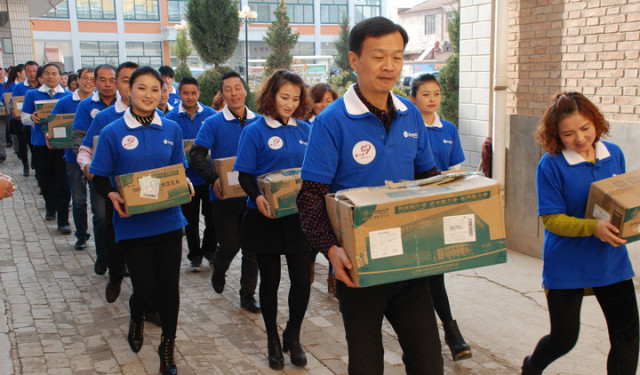 隆力奇甘肅兼陜西分公司總經(jīng)理郭峰先生、甘肅少兒頻道節(jié)目組導(dǎo)演萬英輝先生和隴東地區(qū)的50余名經(jīng)銷商志愿者來到了“省關(guān)愛留守兒童雙聯(lián)站點”慶陽市寧縣新莊小學(xué),為這里的200多名留守兒童帶來了價值數(shù)萬元的冬季生活必需品。