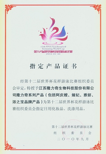 2010: During the 12th Synchronized Swimming World Cup Competition in 2010, Longrich products including daily care, skin care as well as cosmetics and cleaning products were designated by championship’s organizing committee as the products to be used.
