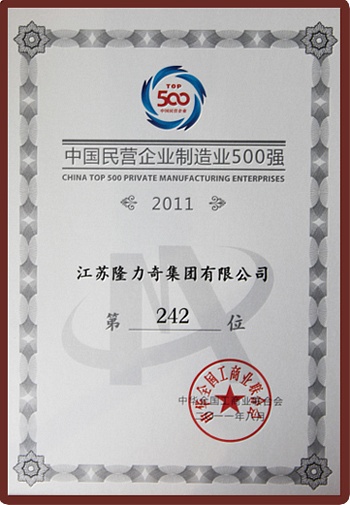 2011: Longrich was ranked in the 242th position among China's top 500 private manufacturing enterprises.