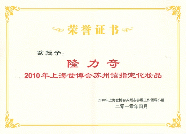 2010: Longrich sponsored the Pavilion of Suzhou during the Shanghai World Expo. Longrich cosmetics products won the ‘’ 2010 Shanghai World Expo Suzhou Pavilion appointed Cosmetic products ‘’.