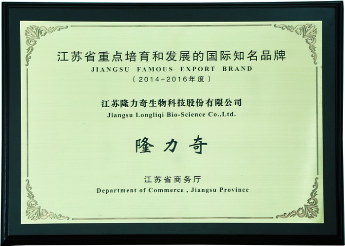 On January 2015, Longrich received the ‘’ 2014-2016 Jiangsu Famous Export Brand ‘’ accreditation from the department of commerce of Jiangsu Province.