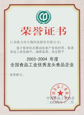 2003-2004 National Food Industry Outstanding Leading Enterprise