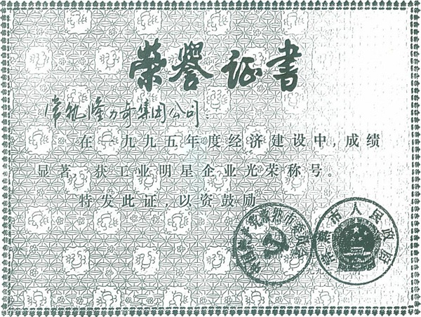 1996: Changshu Snake Industry Company won the '' 1995 Star Industrial Enterprise Prize ''