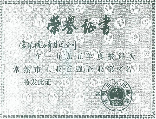 1996: Changshu Snake Industry Company was honored by Changshu People's Government, the Company was ranked 18th among 100 Top Company of Changshu.