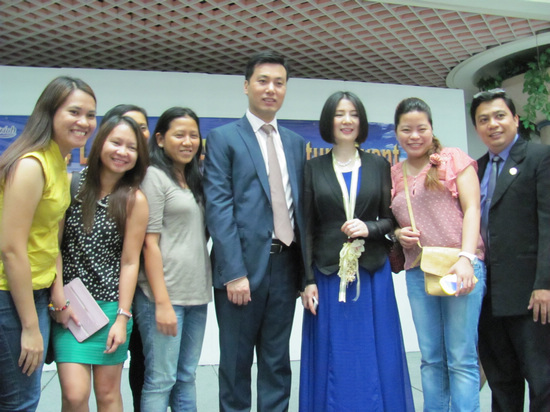 隆力奇國際事業(yè)部總裁錢軍彪(右四)、隆力奇星級董事龔麗君(右三)和經(jīng)銷商合影