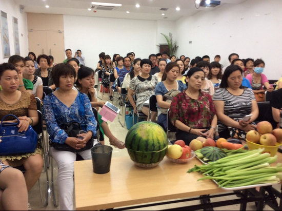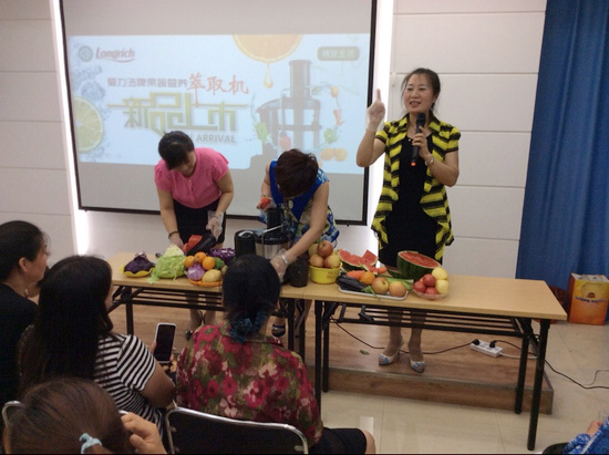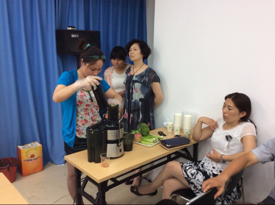 幾位老師飲用了倪嘉老師使用果蔬萃取機(jī)將幾種常見的蔬菜和水果榨出的果汁后,那清冽甘甜幾近于原汁原味且比普通榨汁機(jī)出汁率高出幾倍的神奇效果,令家人嘖嘖稱奇; 同時,將兒童、女士、男士、老人以人群分類,將各種食品搭配套餐介紹給大家,用實例證實了‘食物是最好的藥物’這一養(yǎng)生理論。