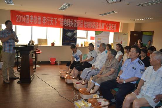 6月15日,時值父親節(jié),隆力奇北京分公司會議室洋溢著暖暖溫情,一場由北京東城區(qū)龍?zhí)斗志?、龍?zhí)渡鐓^(qū)委員會協(xié)辦,隆力奇全程贊助主辦的”倡孝修德·孝行天下“的父親節(jié)公益活動在這里舉行,通過陪爸媽洗腳、陪爸媽說話的方式,20位民警家屬及社區(qū)老人共同接受了來自兒女們的一片孝心,