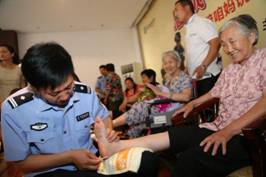現(xiàn)場也采訪了社區(qū)的群眾,居委會的張大媽拉著民警的手親切地說:“你們真是太辛苦了,每次在小區(qū)看到你們一個個的都那么熱情地和我打招呼;你們天天那么忙,看到我拿著重東西就幫我拎回家;可卻沒時間照顧自己的親媽。”另一位李先生說:“今天只是路過這里,不想看到這么感人的活動,比起這些日夜辛苦工作的民警,我們還是幸福的;看到民警同志們?yōu)槟赣H洗腳,我想著回家也為母親洗洗腳,常為母親洗洗腳,把這份溫暖傳遞下去……”