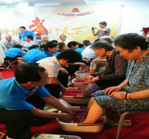 活動現(xiàn)場,隆力奇志愿者們與老人們歡聚一堂,親如一家,志愿者們?yōu)?0多為老人洗腳,猶如為自己的父親母親及爺爺、奶奶洗腳一樣充滿感恩,志愿者們也感覺無比開心。