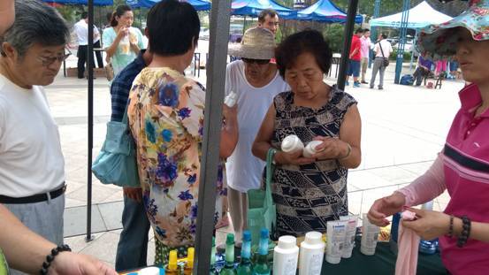 本次活動(dòng)現(xiàn)場(chǎng)布置了大量印有隆力奇logo的帳篷等公司宣傳品,給人以極強(qiáng)的視覺(jué)沖擊,為本次活動(dòng)的品牌宣傳拔得了頭籌。在青島分公司全體員工的精心宣傳造勢(shì)下,隆力奇的攤位異?;鸨?,由于夏季正是使用洗發(fā)水、沐浴露等洗護(hù)用品的高峰季節(jié),此類商品尤其受到周圍群眾的追捧,短短一上午,所有商品均已售罄。