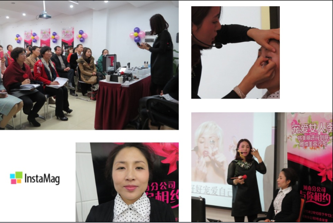資深的化妝師丹丹為大家?guī)?lái)一組有視覺(jué)沖擊的名人妝前妝后對(duì)比照,讓大家了解了化妝保養(yǎng)的重要性,隨后介紹了雅璨彩妝的特效,并從與會(huì)伙伴中挑選一位模特,現(xiàn)場(chǎng)用雅璨彩妝打造了一款精致自然的妝容。看著身邊普通的伙伴在雅璨彩妝的妝扮下變身為漂亮的魅力女性,前后的對(duì)比讓與會(huì)伙伴嘆為觀止。