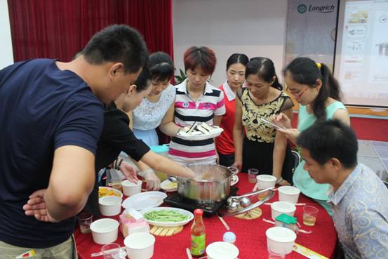 好水要配好鍋,才能煮出一鍋健康營養(yǎng)的美食。接著由隆力奇福建分公司的高級經(jīng)銷商,也是本次鍋宴的主廚,陳密老師向所有來賓講解了隆力奇和合康能鍋的12大功能,陳密老師用生動的語言介紹了康能鍋的神奇功能以及原理,并帶領(lǐng)所有家人一起動手做一道康能鍋大雜燴美食――無水海鮮火鍋。所有家人一起戴上一次性手套,把肉、南瓜、魚、黃瓜等十多種食材一層一層的鋪在康能鍋里,只要蓋上鍋蓋,不用蔥姜料酒,不僅可以把美食煮熟,而且互不串味。所有來賓也現(xiàn)場體驗了一把做大廚的感覺,許多新朋友紛紛沖上舞臺分享,表示對這種簡單健康的廚藝方式特別好奇,非常急切的想知道神奇的和合康能鍋煮出來的健康美食。