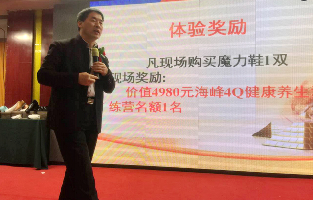由張必清教授主講的艾沛力魔力鞋,讓所有的家人們感受到中國(guó)中醫(yī)學(xué)的博大精深,以及產(chǎn)品帶來(lái)的全新體驗(yàn),張教授詳細(xì)介紹了魔力鞋的功能和特點(diǎn):艾力沛魔力鞋運(yùn)用了現(xiàn)代生物工程技術(shù)和中醫(yī)經(jīng)絡(luò)學(xué)和人體力學(xué)等技術(shù)。通過(guò)對(duì)足部的自助刺激,調(diào)整人的足部反射區(qū)和穴位點(diǎn),使人體相對(duì)應(yīng)的臟器官能夠得到相應(yīng)的調(diào)節(jié),激發(fā)人體的自我調(diào)節(jié)和自助修復(fù)潛能。并讓許多家人上臺(tái)體驗(yàn),讓他們感受到魔力鞋的神奇所在,與會(huì)者掌聲不斷,尖叫連連。