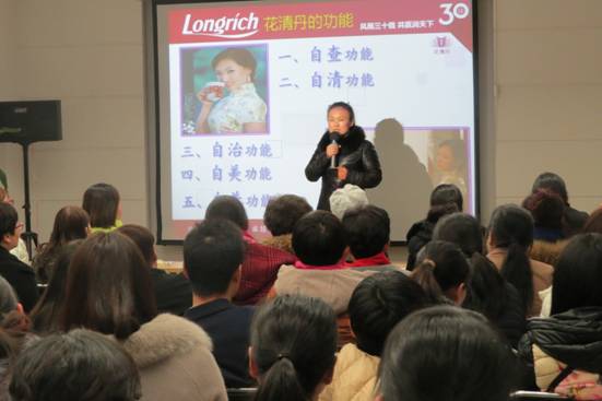下午,場(chǎng)內(nèi)座無(wú)虛席,會(huì)場(chǎng)爆滿(mǎn)。隨著一曲《女人花》會(huì)議正式拉開(kāi)帷幕,在家人們熱烈的掌聲中,韓亞金教授閃亮登場(chǎng)。韓教授充滿(mǎn)幽默風(fēng)趣的講課風(fēng)格立刻吸引了現(xiàn)場(chǎng)所有家人的注意力。通過(guò)韓教授專(zhuān)業(yè)的知識(shí)、豐富的經(jīng)驗(yàn),闡述了婦科疾病對(duì)當(dāng)今女性朋友身體的危害,全方位的剖析了女性身體健康的重要性,由點(diǎn)到面詳細(xì)的講解了產(chǎn)品的功能和原理;花清丹是女性家人的清潔工,促使女性健康與美麗,讓天下所有女性獲得自尊、自愛(ài)、自強(qiáng)、自立與自信。