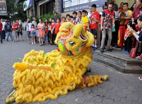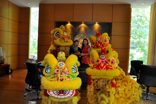 Good wishes were expressed to the accompaniment of lion dance