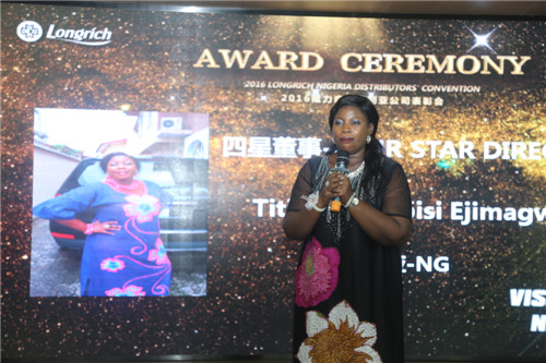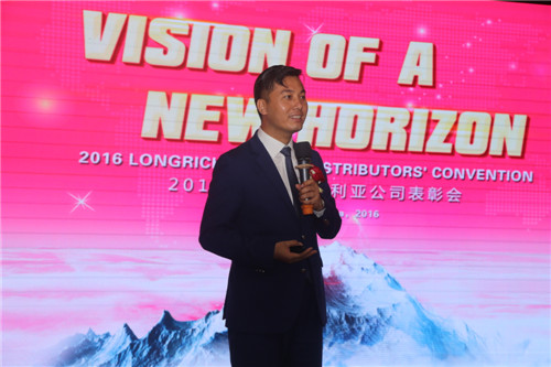 大會進行徐董致辭,徐董首先對各位遠道而來的尼日利亞經(jīng)銷商代表表示熱烈歡迎,并介紹隆力奇發(fā)展30年所累積的資源優(yōu)勢,重點講解了隆力奇在整個國際市場上目前的發(fā)展環(huán)境以及公司近年來在工業(yè)4.0工廠打造升級以及養(yǎng)生小鎮(zhèn)上的建設成就。錢總作隆力奇國際區(qū)2017年發(fā)展策略介紹,坦言尼日利亞市場在2016年期間發(fā)展勢頭良好,期間涌現(xiàn)一批成績出彩的經(jīng)銷商代表,希望下一步在國家“一帶一路”政策的利好發(fā)展環(huán)境下,尼日利亞市場能夠取得更多出彩的成績。