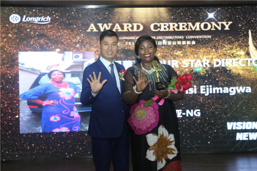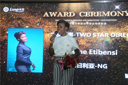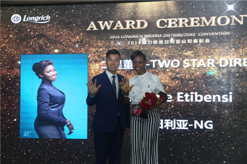 錢總為隆力奇高級經(jīng)銷商Udeme作會議表彰