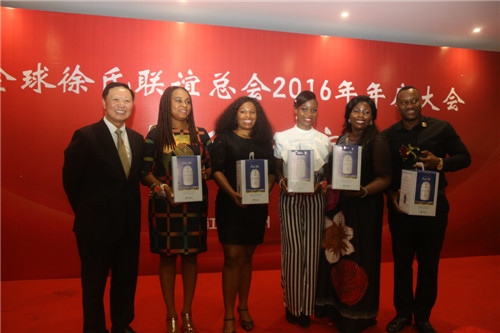 晚宴現(xiàn)場徐董給尼日利亞高級經(jīng)銷商贈送水機
