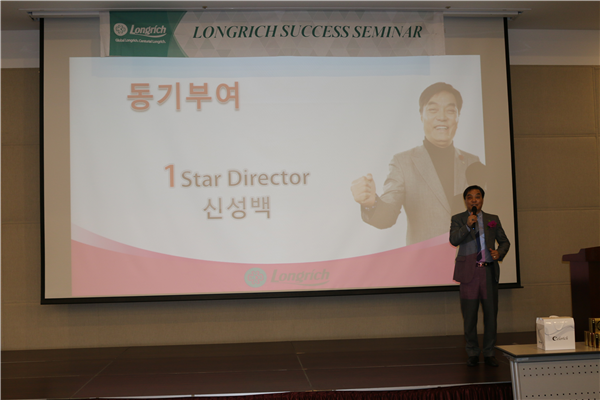釜山地區(qū)1星董事—申圣白社長(zhǎng)上臺(tái)講話并鼓舞士氣,此外嶺南地區(qū)的部分新會(huì)員經(jīng)銷商也上臺(tái)分享了自己的事業(yè)經(jīng)歷。