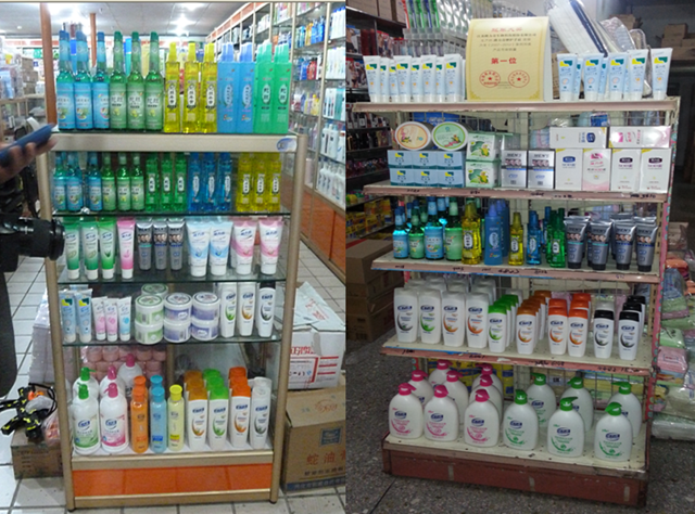 以下是合肥長江批發(fā)市場的檔口陳列打造,隆力奇黃金品類花露水已陸續(xù)上架銷售