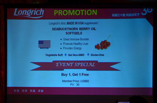 Mr. Eric Chang, the President of Longrich America unveiling the development strategy of the US market and releasing the US made Sea Buckthorn Berry Oil Softgel