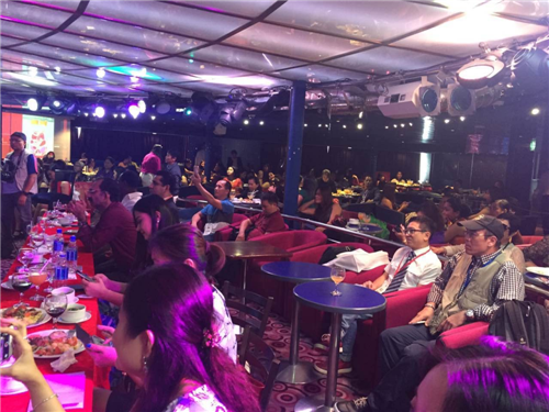 中午時分,賓客們陸續(xù)抵達游輪入座并享用自助午餐,近三百人的出席熱鬧非凡。